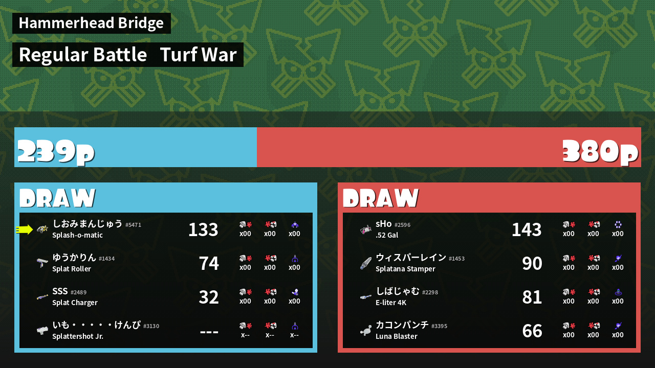 | Mode | Turf War - Regular Battle | ||
