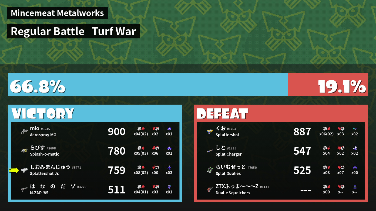| Medals | #1 Overall Splatter #1 Enemy-Base Inker #1 Super Jump Spot | ||||