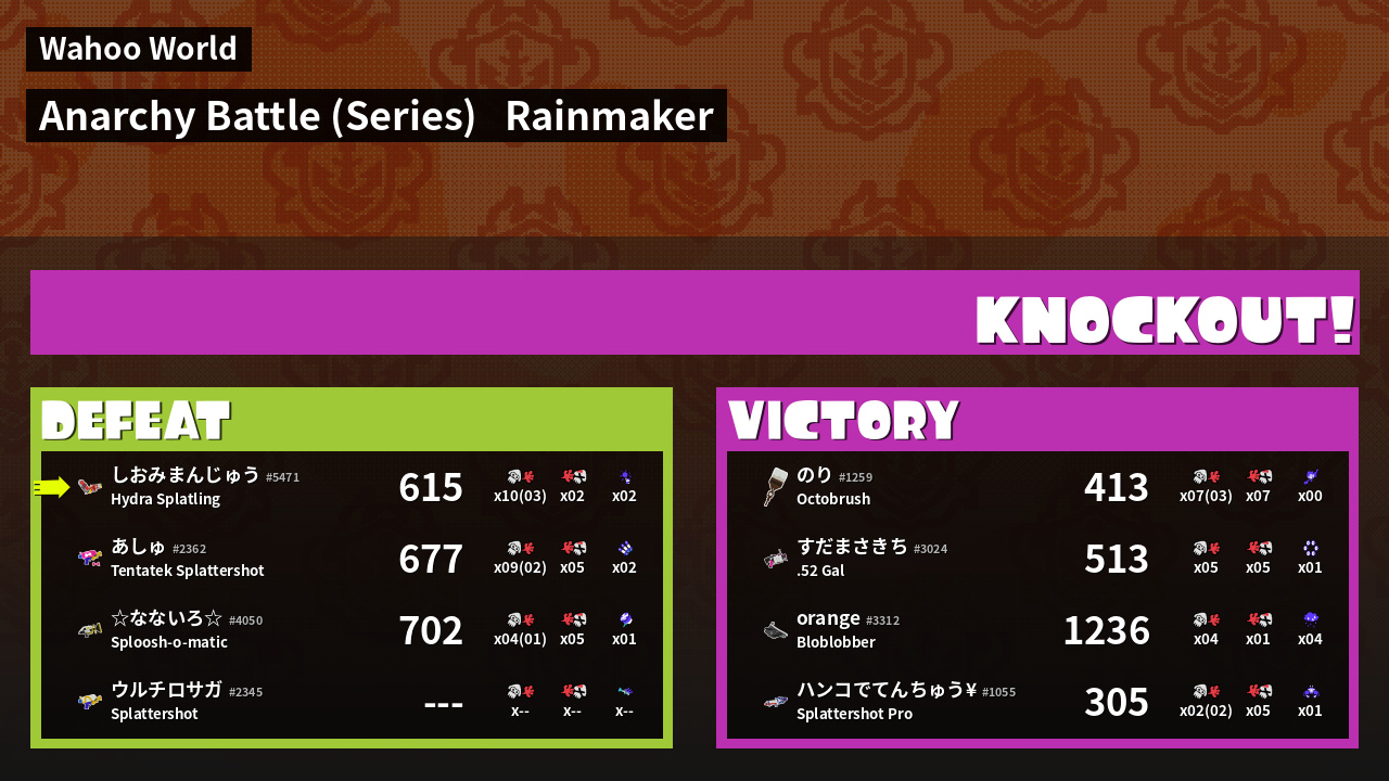 | Weapon | Hydra Splatling ( Autobomb / Booyah Bomb) | ||