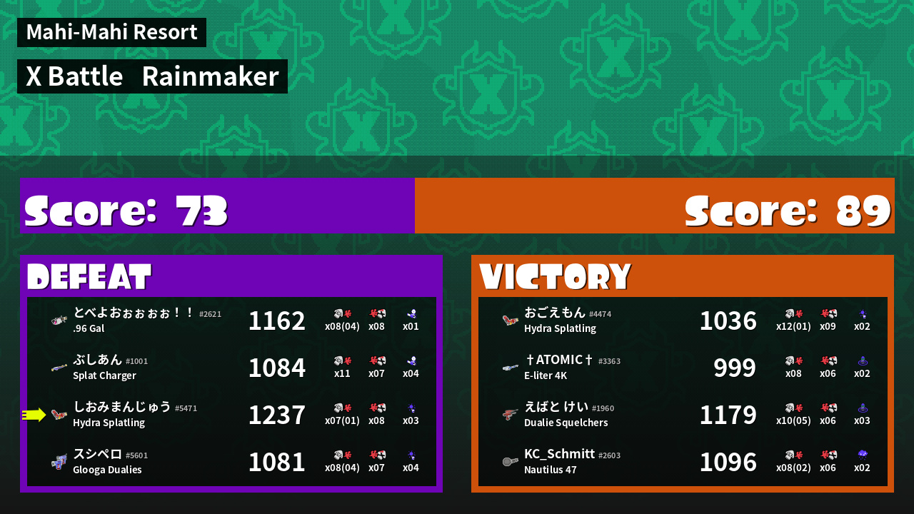 | Mode | Rainmaker - X Battle | ||