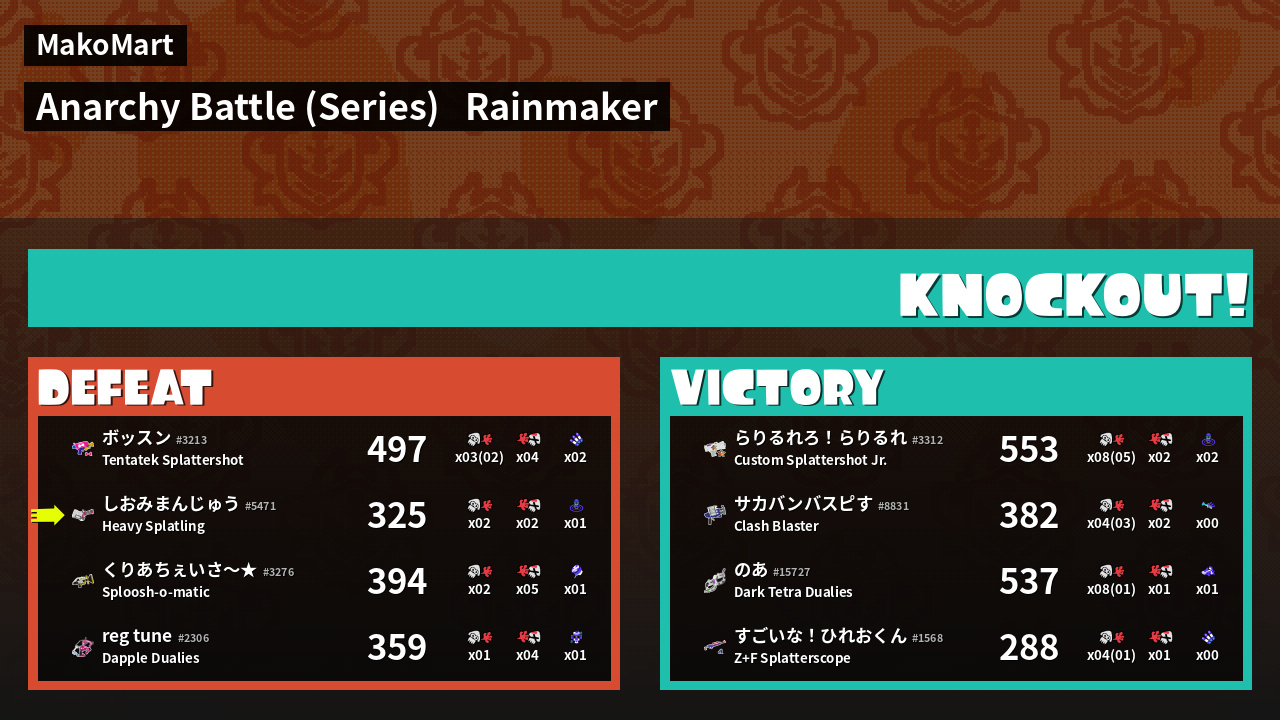 | Mode | Rainmaker - Anarchy Battle (Series) | ||