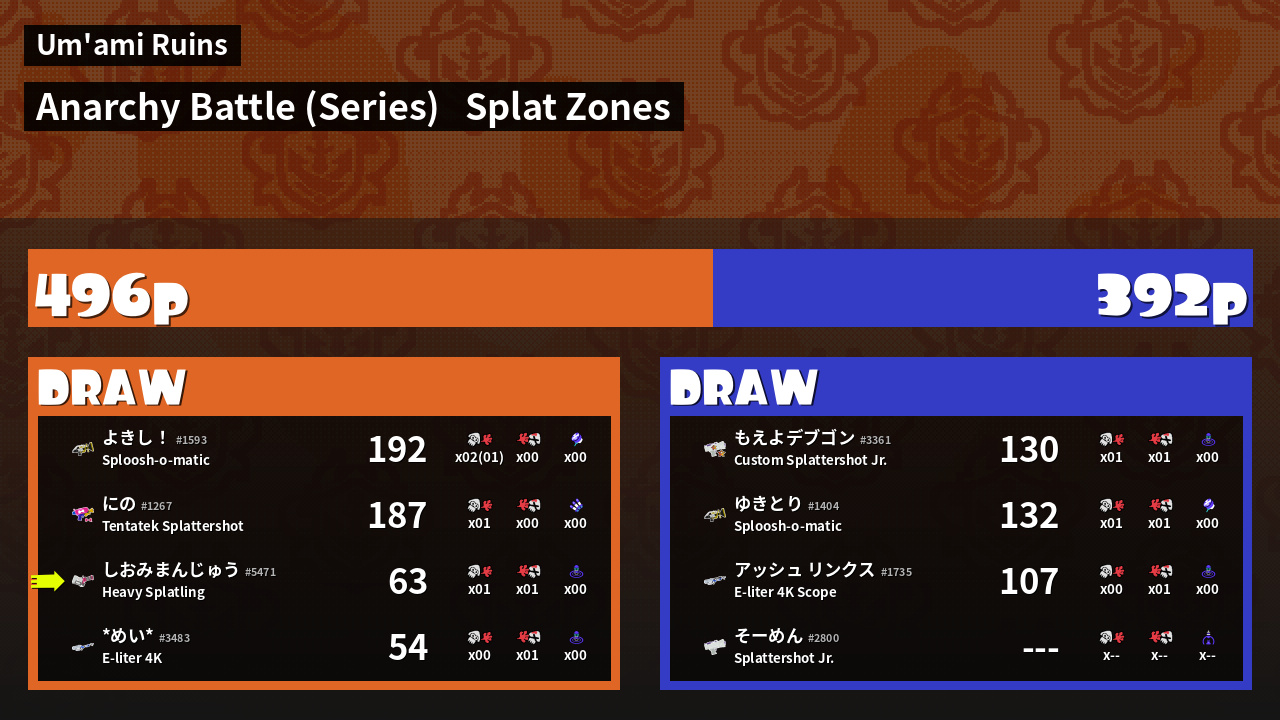 | Mode | Splat Zones - Anarchy Battle (Series) | ||