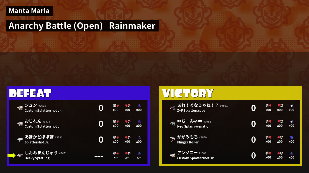 | Mode | Rainmaker - Anarchy Battle (Open) | ||