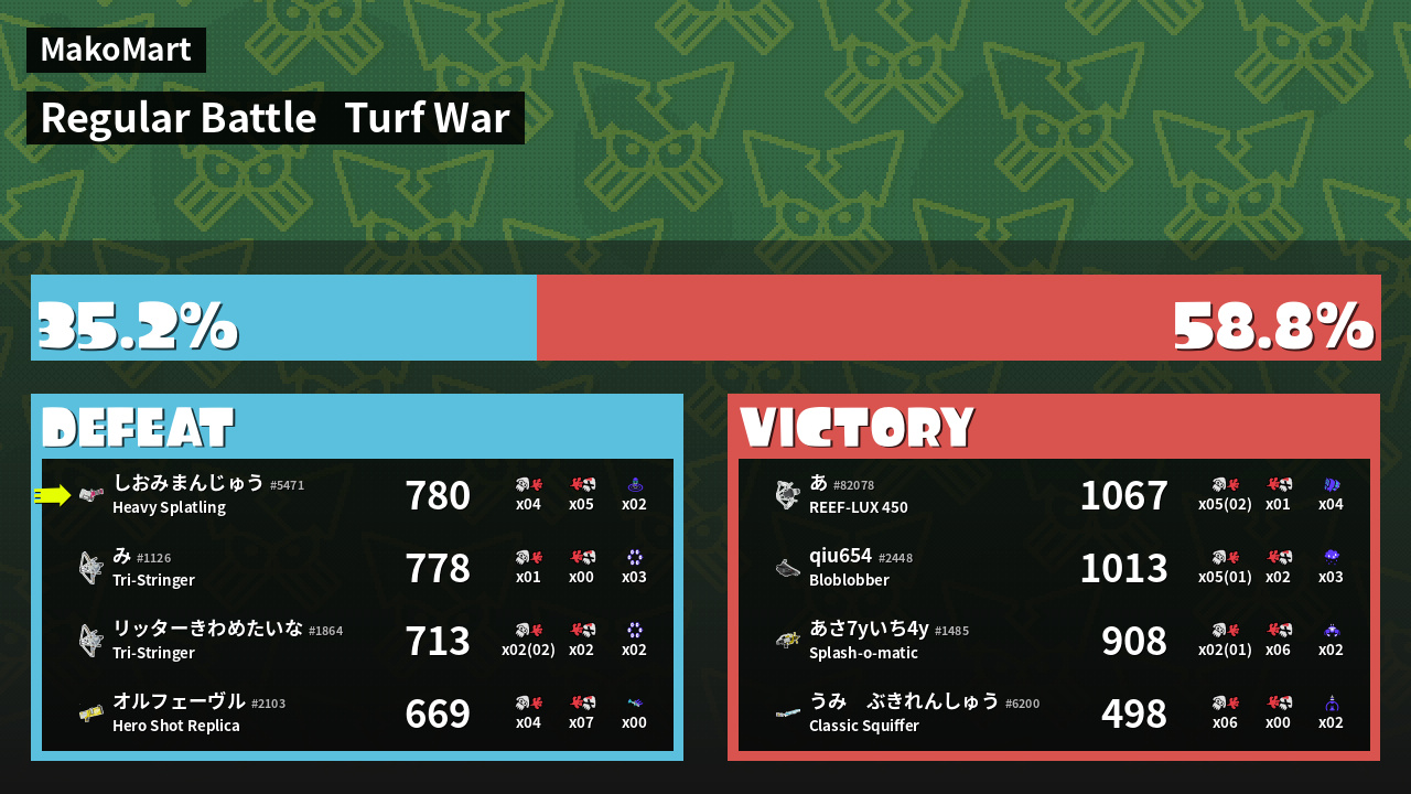 | Mode | Turf War - Regular Battle | ||