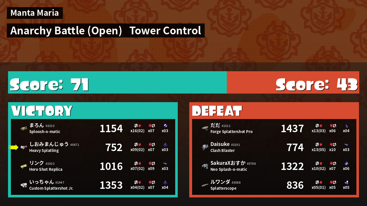 | Mode | Tower Control - Anarchy Battle (Open) | ||