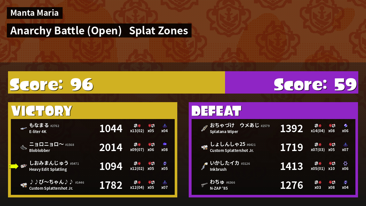 | Mode | Splat Zones - Anarchy Battle (Open) | ||