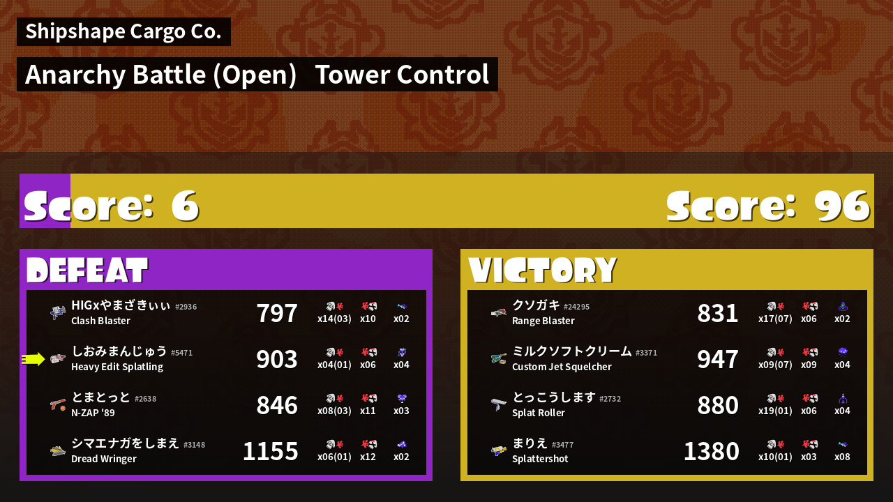 | Mode | Tower Control - Anarchy Battle (Open) | ||