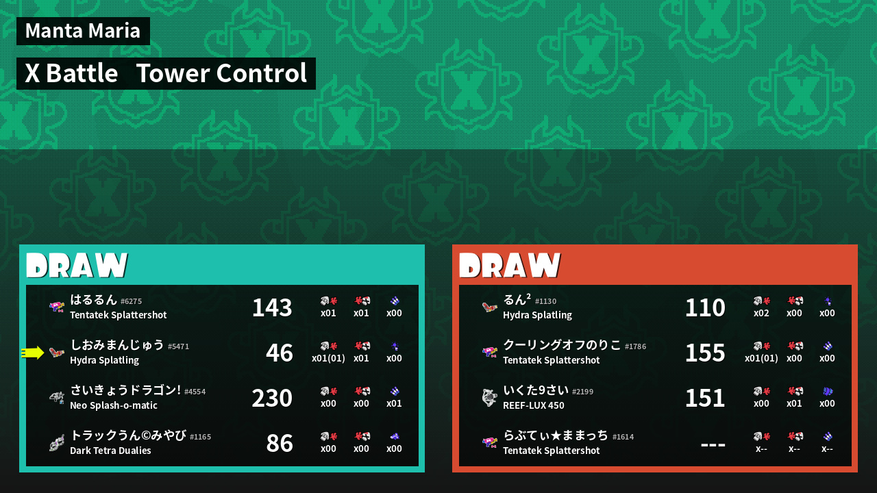 | Mode | Tower Control - X Battle | ||