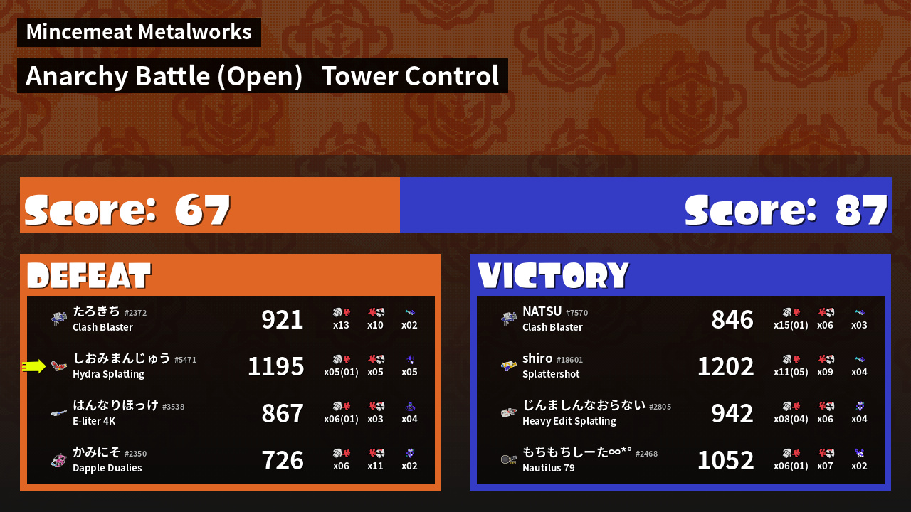 | Mode | Tower Control - Anarchy Battle (Open) | ||
