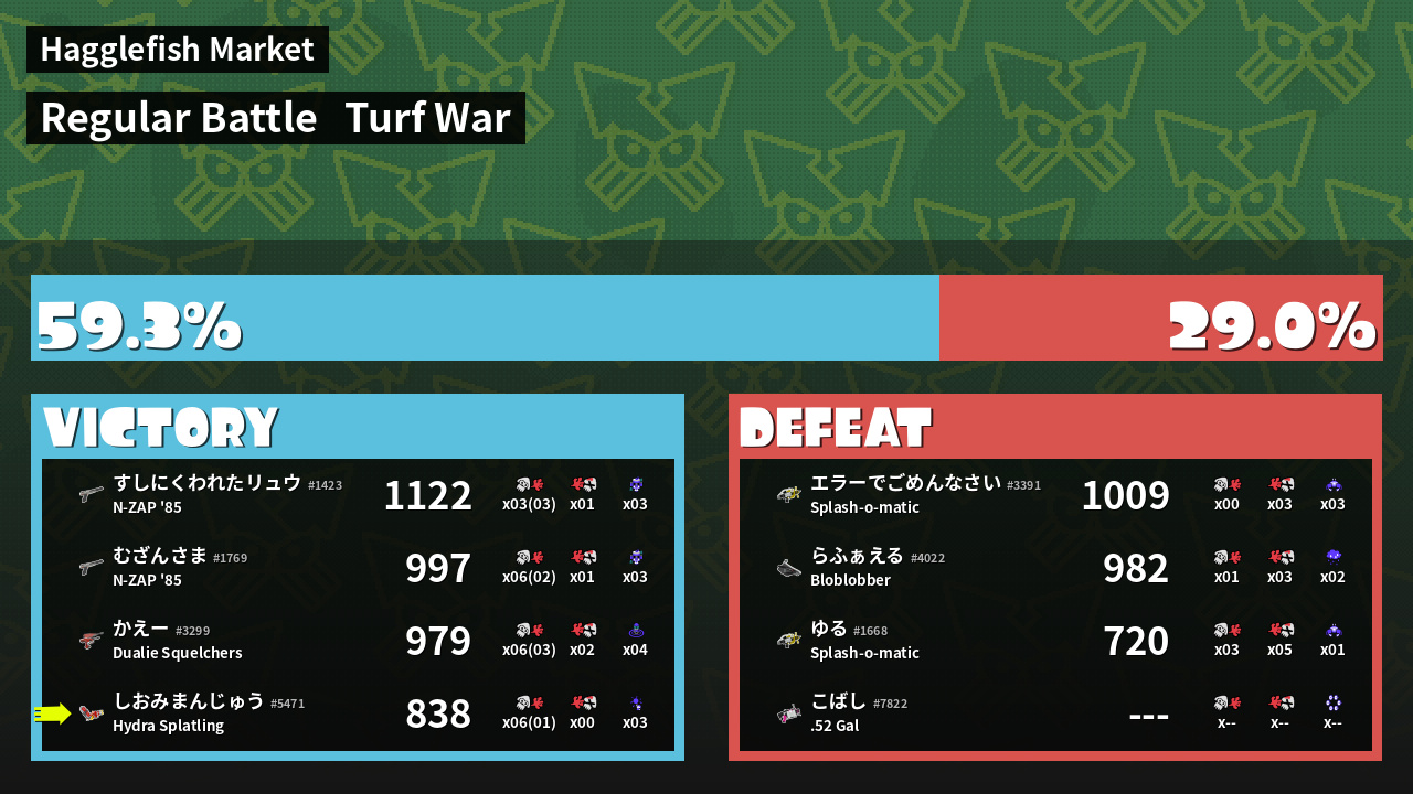 | Medals | #1 Overall Splatter #1 Enemy Splatter #2 Popular Target | ||