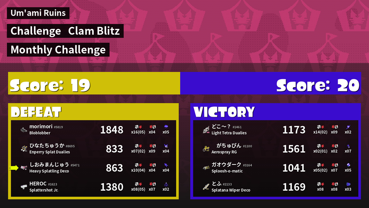 | Mode | Clam Blitz - Challenge | ||