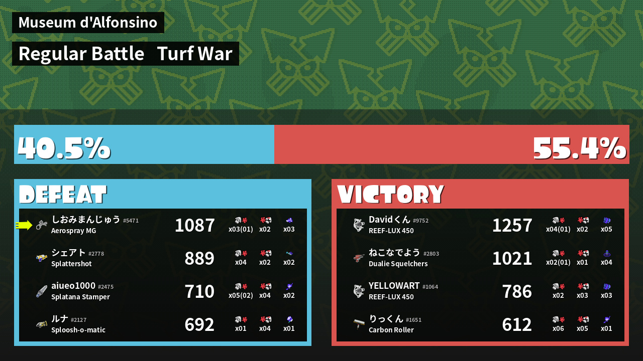 | Medals | #1 Turf Inker #1 Popular Target #1 Enemy-Base Inker | ||