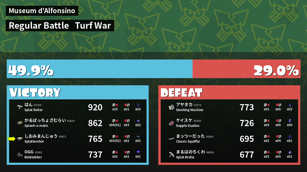 | Mode | Turf War - Regular Battle | ||||