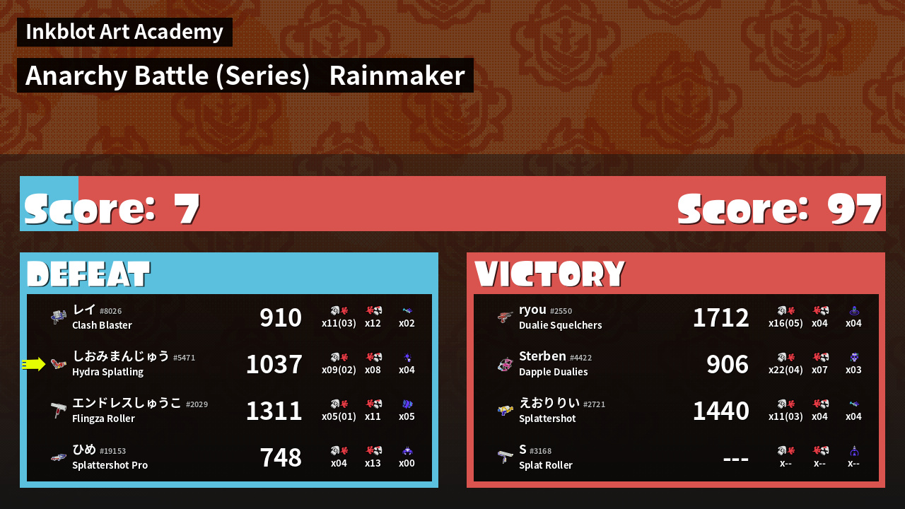 | Mode | Rainmaker - Anarchy Battle (Series) | ||