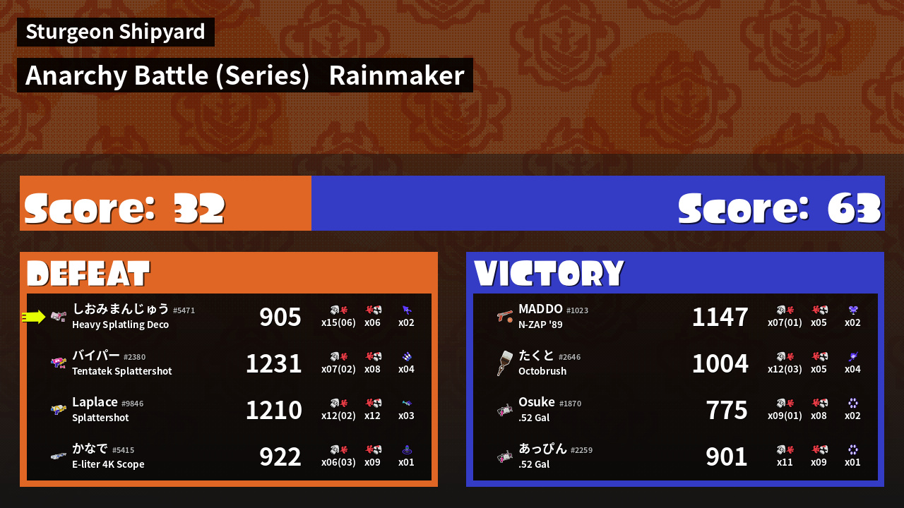 | Mode | Rainmaker - Anarchy Battle (Series) | ||