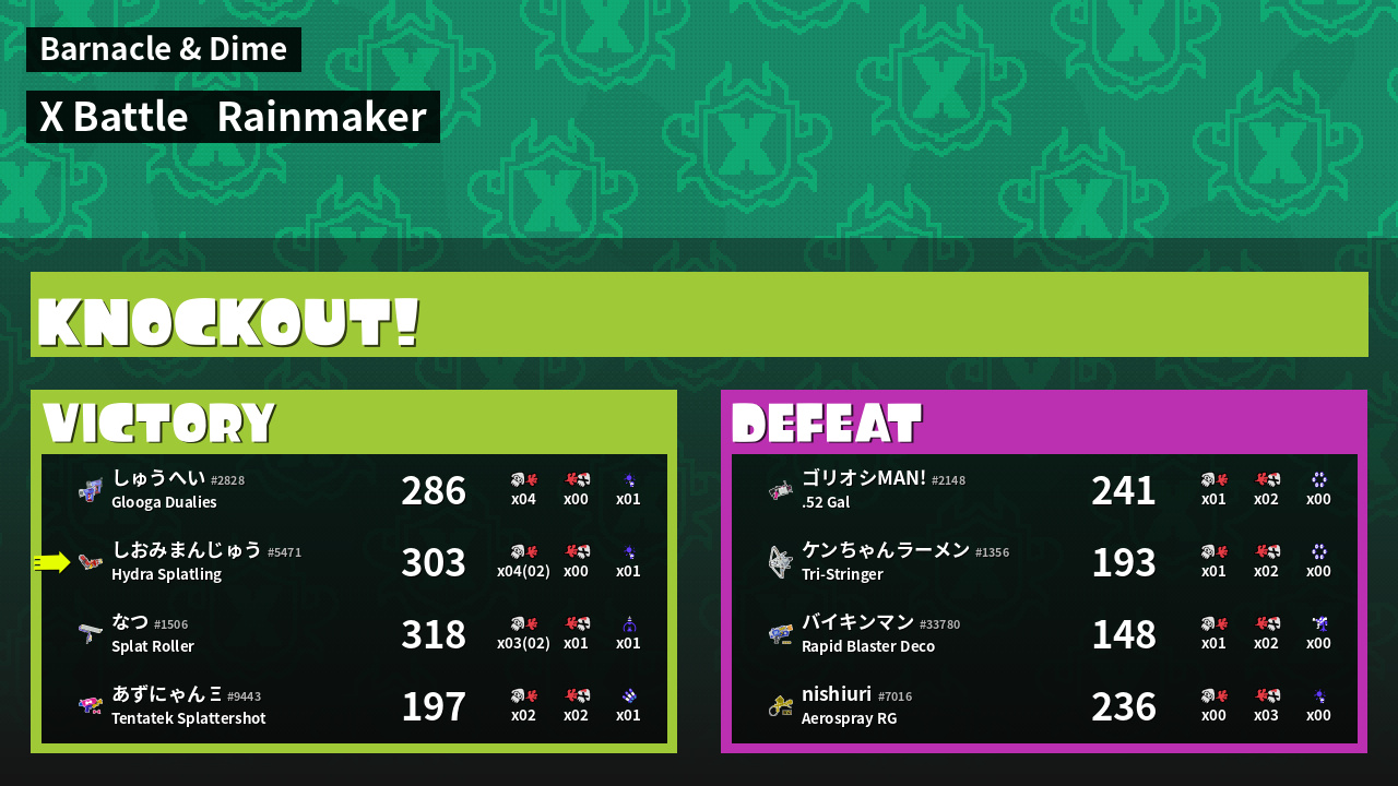 | Mode | Rainmaker - X Battle | ||