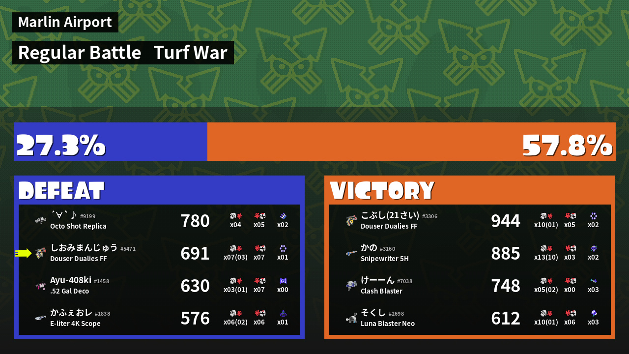 | Weapon | Douser Dualies FF ( Ink Mine / Killer Wail 5.1) | ||