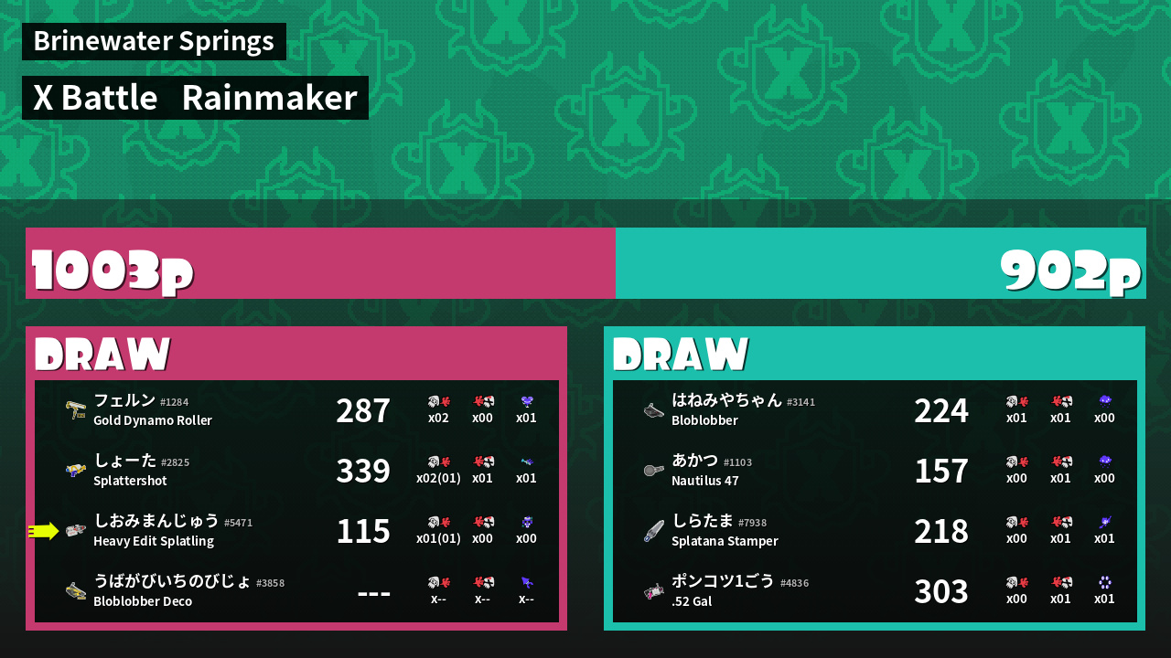 | Weapon | Heavy Edit Splatling ( Curling Bomb / Tacticooler) | ||