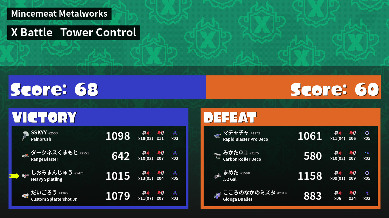 | Weapon | Heavy Splatling ( Sprinkler / Wave Breaker) | ||