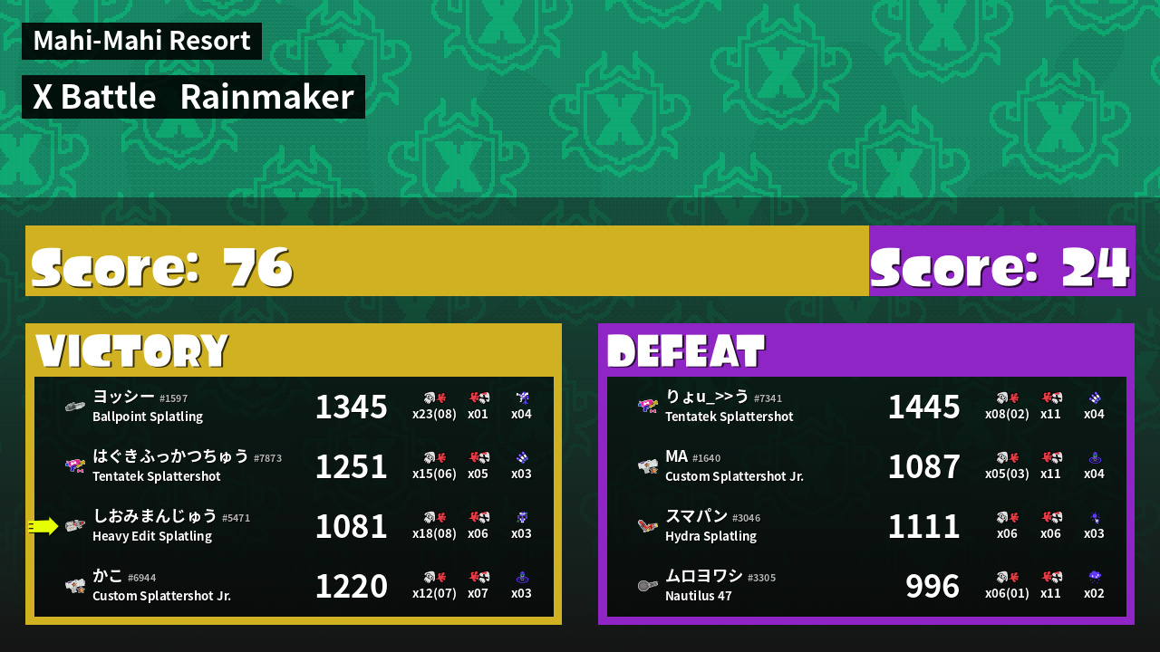 | Medals | #1 Splat Assister #1 Rainmaker Stopper First Splat! | ||