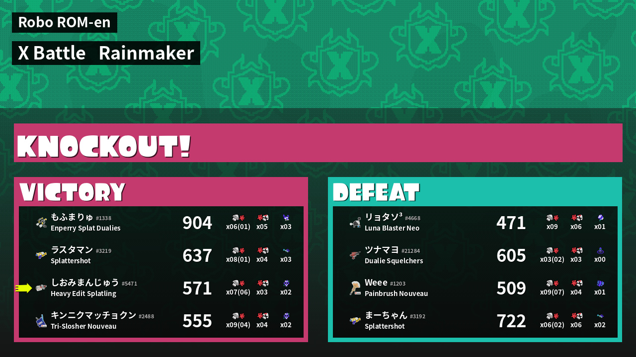 | Medals | #1 Super Jump Spot #1 Splat Assister #1 Rainmaker Carrier | ||