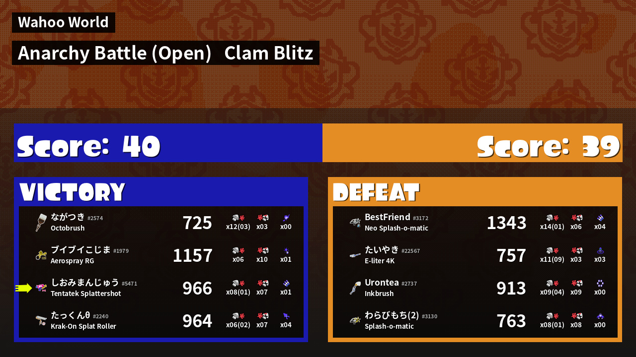 | Mode | Clam Blitz - Anarchy Battle (Open) | ||