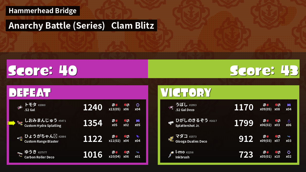 | Mode | Clam Blitz - Anarchy Battle (Series) | ||