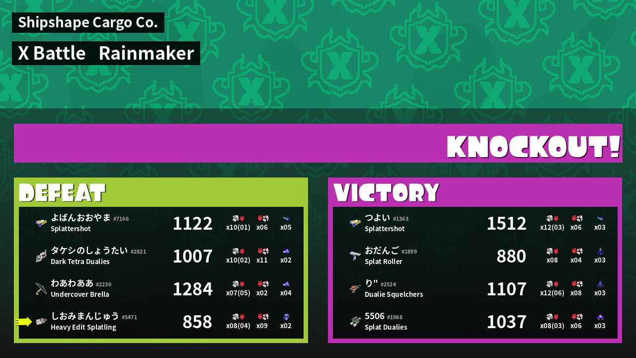 | Weapon | Heavy Edit Splatling ( Curling Bomb / Tacticooler) | ||