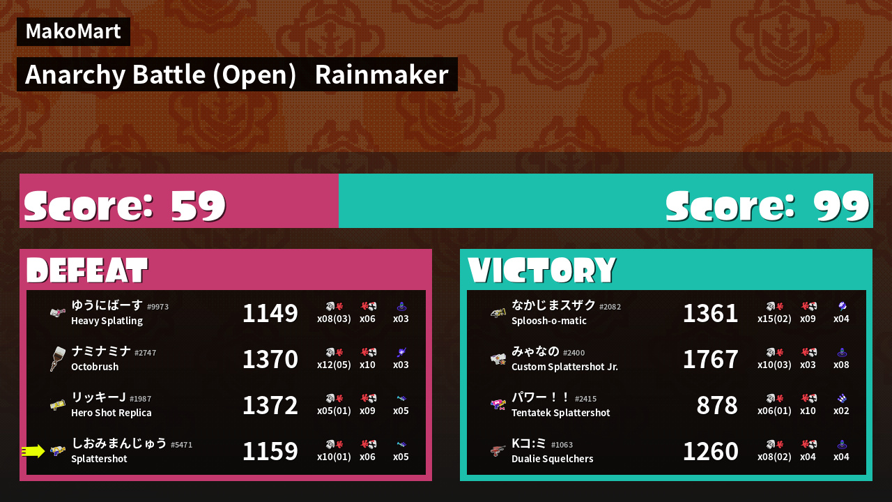 | Mode | Rainmaker - Anarchy Battle (Open) | ||