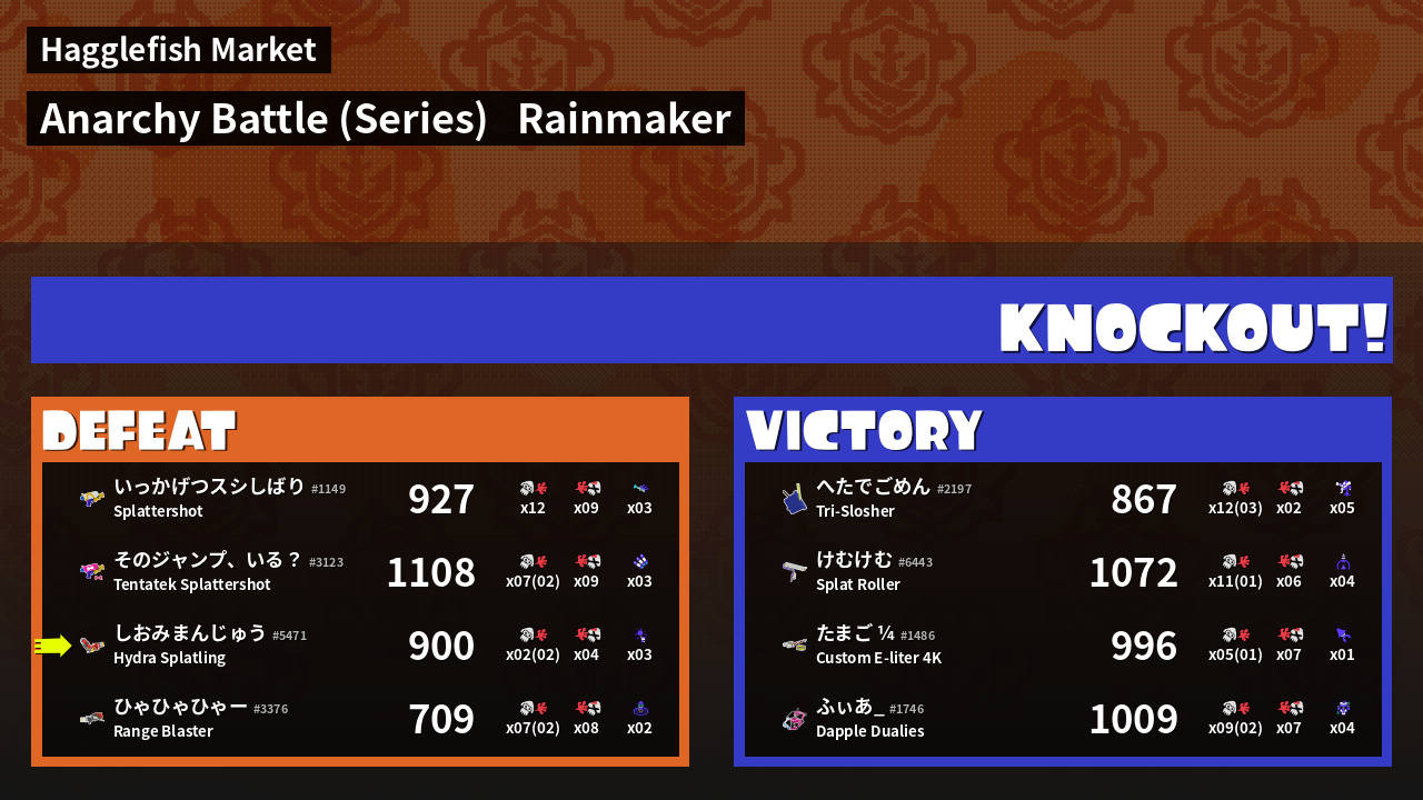 | Medals | #1 Super Jump Spot #1 Splat Assister #1 Damage Taker | ||