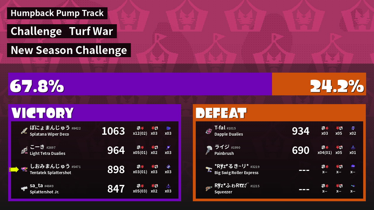 | Weapon | Tentatek Splattershot ( Splat Bomb / Triple Inkstrike) | ||