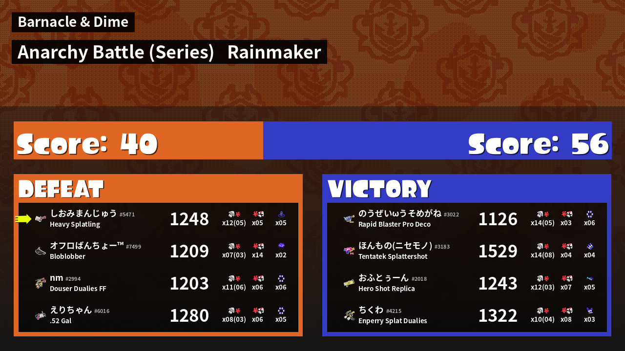 | Mode | Rainmaker - Anarchy Battle (Series) | ||