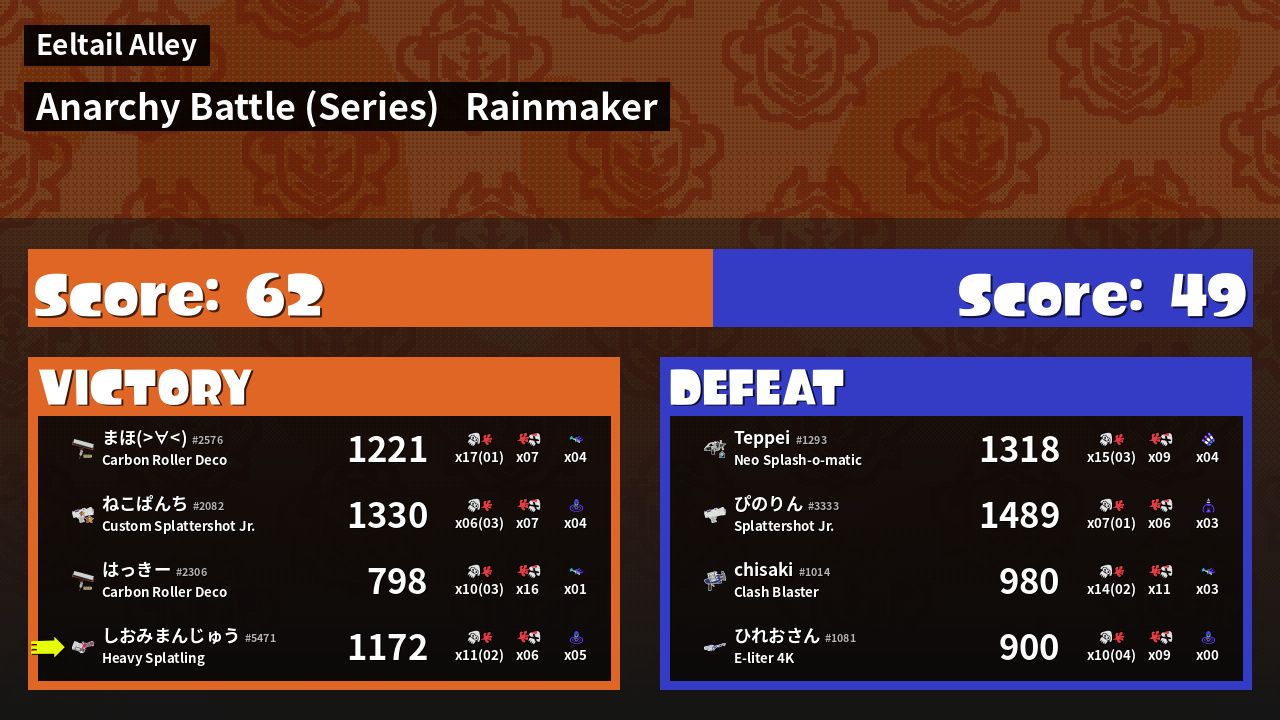 | Mode | Rainmaker - Anarchy Battle (Series) | ||