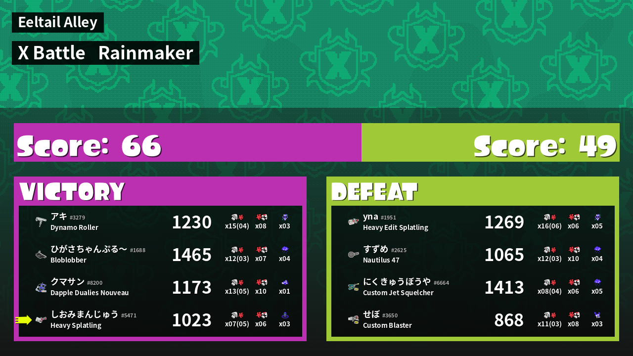 | Medals | #1 Splat Assister #1 Wave Breaker User #2 Popular Target | ||