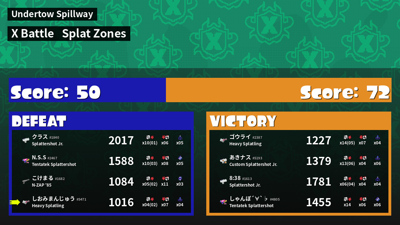 | Medals | #1 Splat Zone Hero #1 Wave Breaker User #2 Super Jump Spot | ||