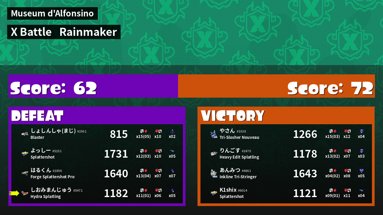 | Medals | #1 Enemy Splatter #1 Rainmaker Stopper #1 Damage Taker | ||