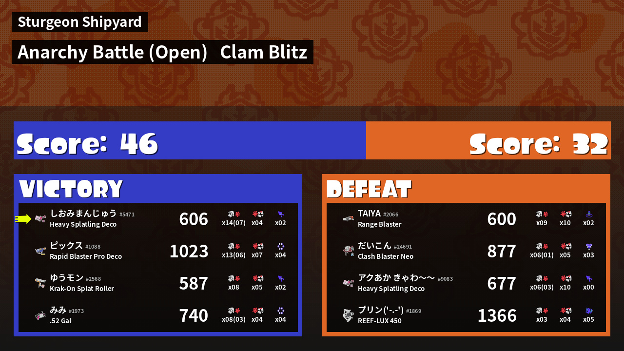 | Mode | Clam Blitz - Anarchy Battle (Open) | ||
