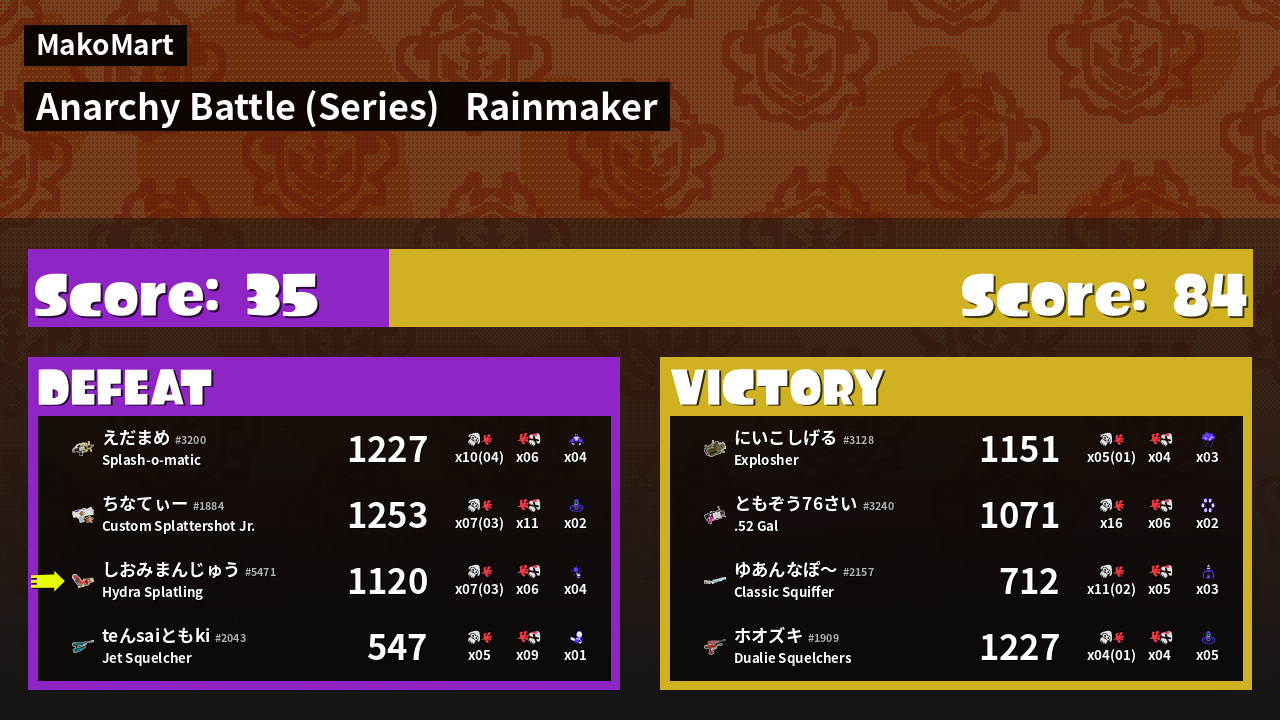 | Medals | #1 Super Jump Spot #1 Rainmaker Stopper #2 Overall Splatter | ||