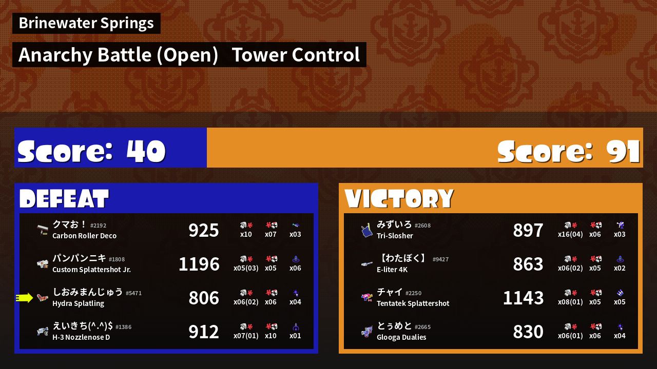 | Mode | Tower Control - Anarchy Battle (Open) | ||
