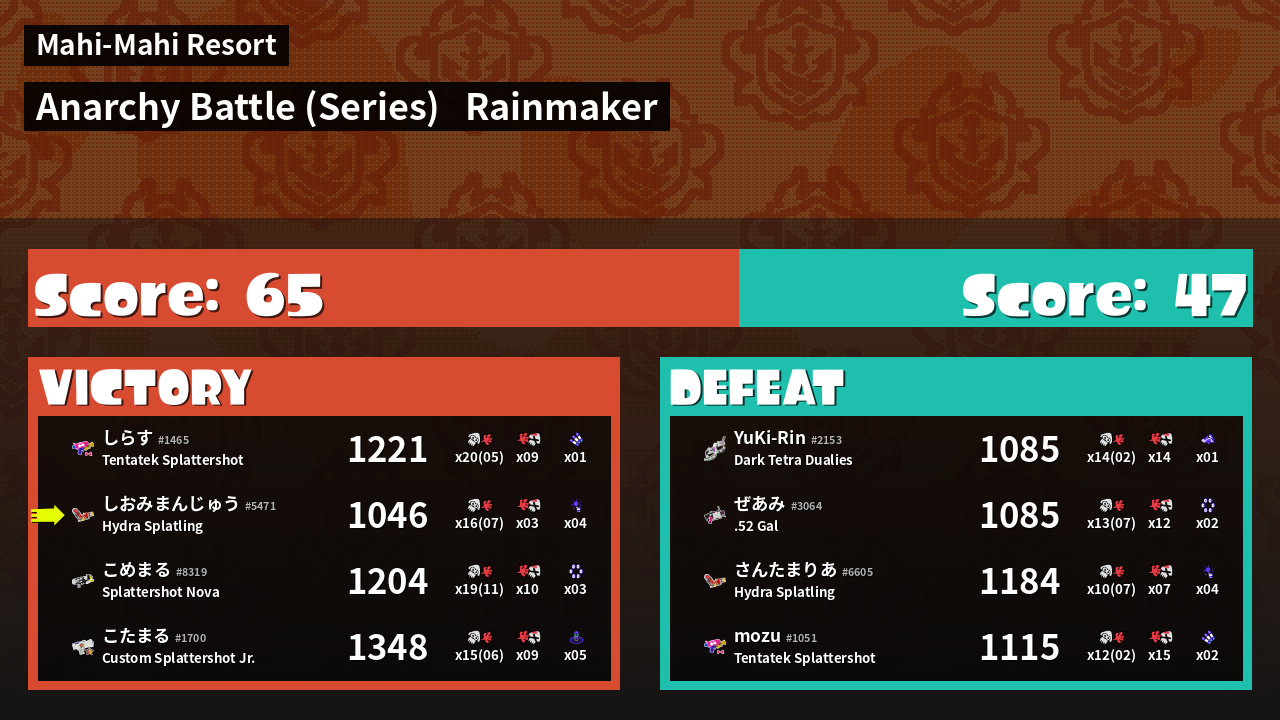 | Mode | Rainmaker - Anarchy Battle (Series) | ||
