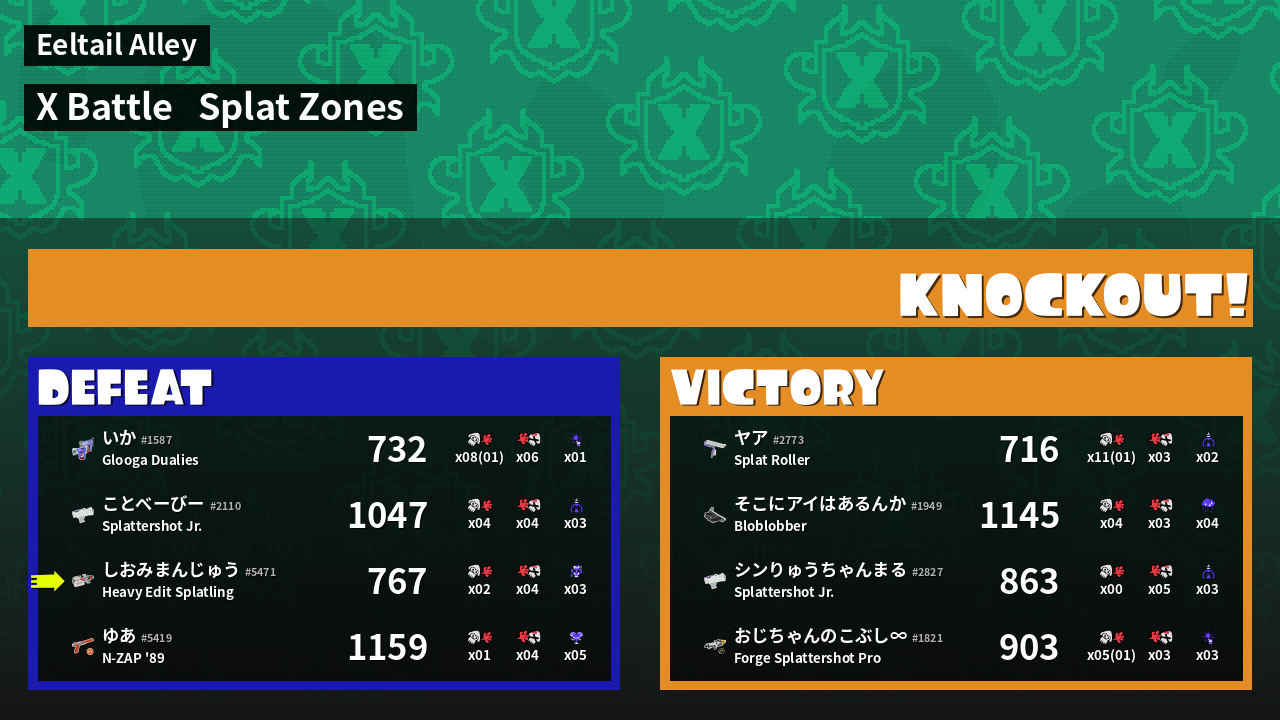 | Mode | Splat Zones - X Battle | ||