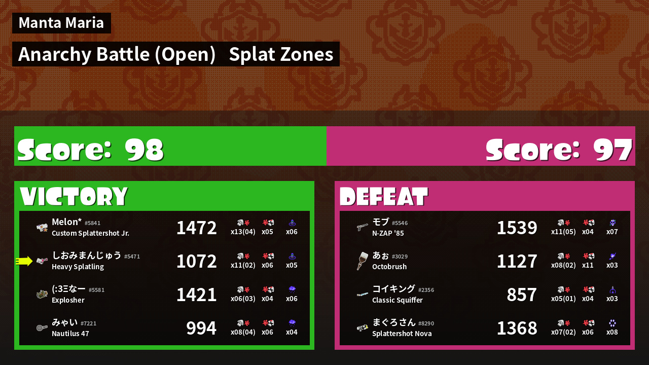 | Mode | Splat Zones - Anarchy Battle (Open) | ||