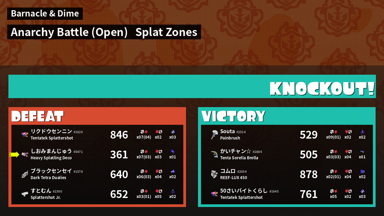 | Mode | Splat Zones - Anarchy Battle (Open) | ||