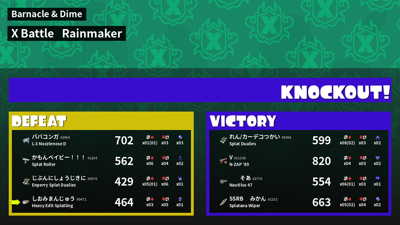 | Weapon | Heavy Edit Splatling ( Curling Bomb / Tacticooler) | ||