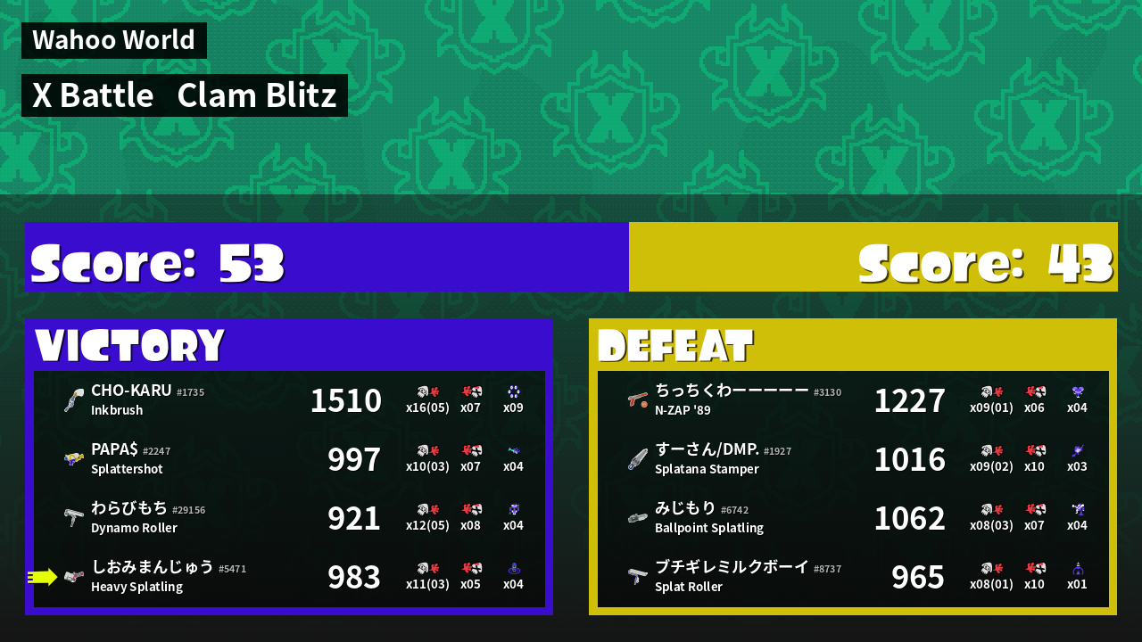 | Mode | Clam Blitz - X Battle | ||
