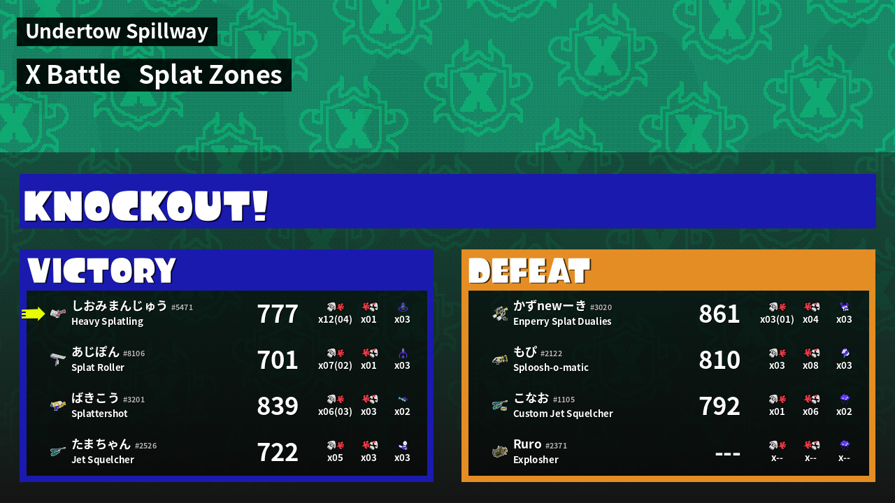 | Mode | Splat Zones - X Battle | ||