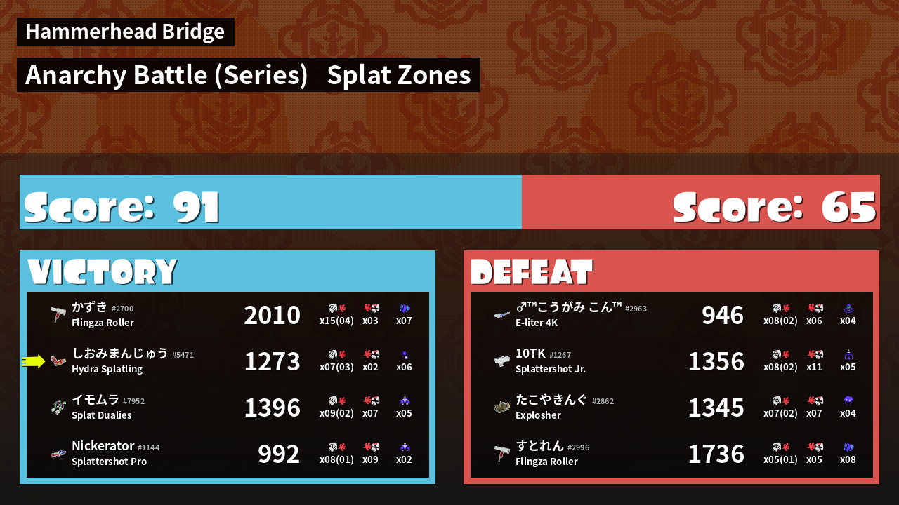 | Mode | Splat Zones - Anarchy Battle (Series) | ||