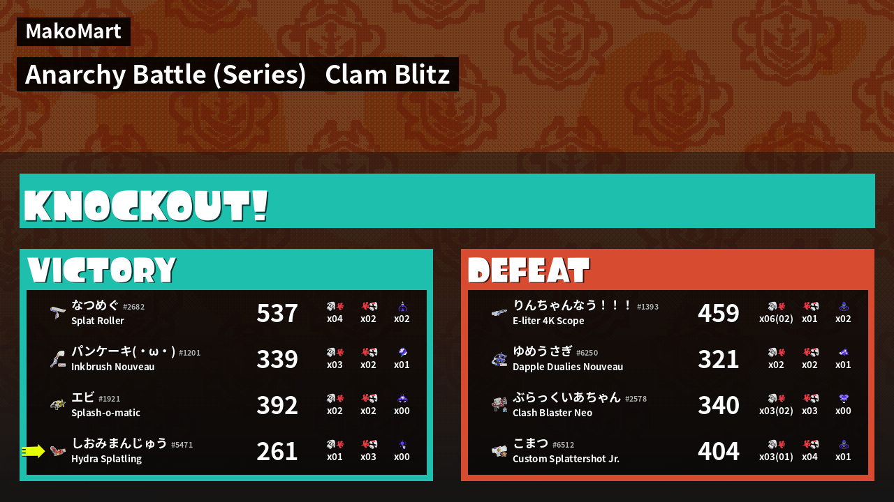 | Mode | Clam Blitz - Anarchy Battle (Series) | ||