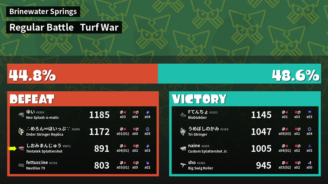 | Mode | Turf War - Regular Battle | ||