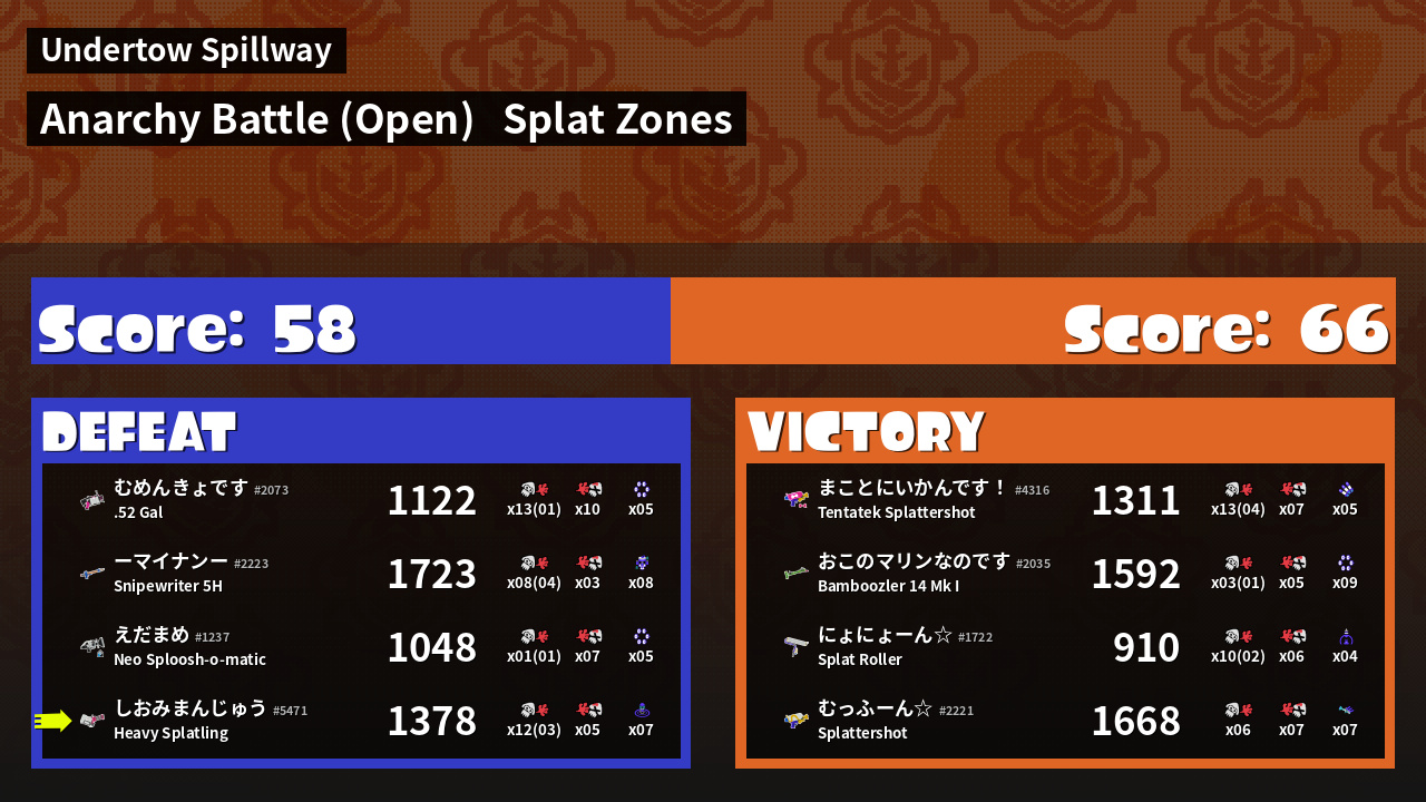 | Mode | Splat Zones - Anarchy Battle (Open) | ||
